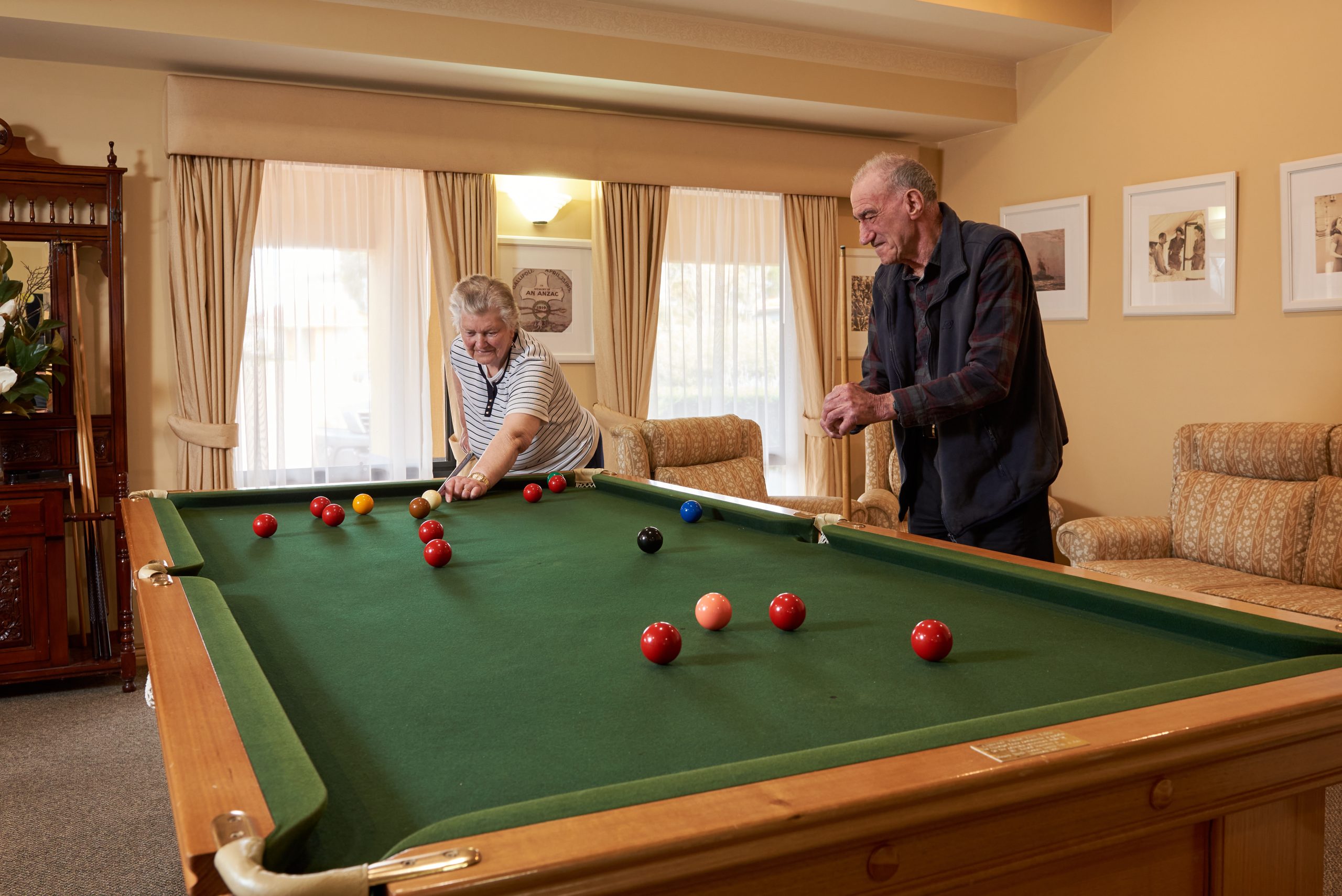 Living among friends and being part of a close community is important. Clarence Estate was designed with this in mind: each of Clarence Estate’s five houses is built around a shared space with a kitchen, dining room and lounge room where our residents like to relax by the fireplace, catch up with friends and family or watch their favourite television show.
